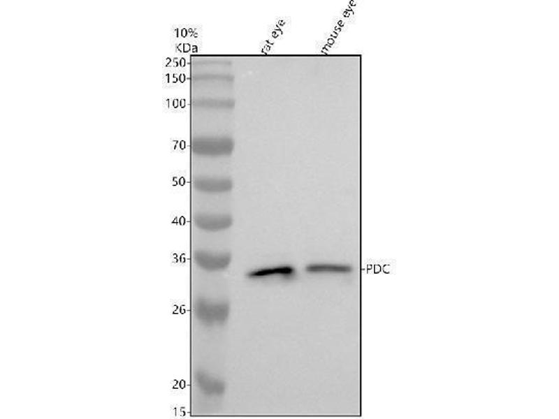 - E.coli-derived human PDC recombinant protein (Position: M1-E246). Human PDC shares 88.2% and 87.8% amino acid (aa) sequence identity with mouse and rat PDC, respectively.