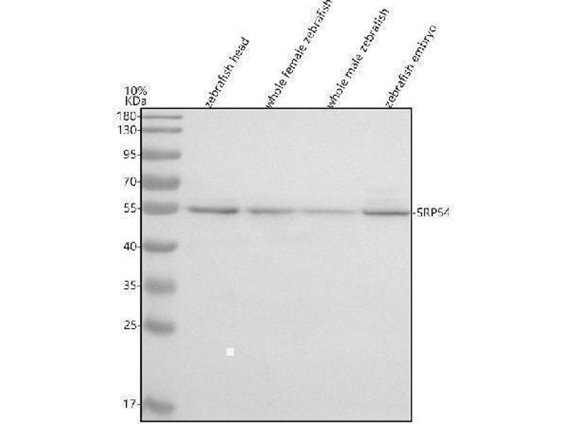 - Anti-Zebrafish SRP54 Antibody catalog # AZQ7ZVN5. Tested in WB applications. This antibody reacts with Zebrafish. This is a premium antibody that guarantees superior quality, high affinity, and strong signals with minimal background in Western blot applications.