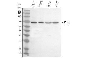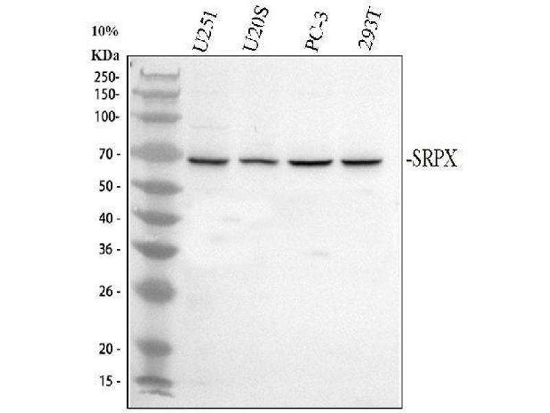 - Anti-SRPX Antibody catalog # A10454-1. Tested in WB, ELISA applications. This antibody reacts with Human. This is a premium antibody that guarantees superior quality, high affinity, and strong signals with minimal background in Western blot applications.