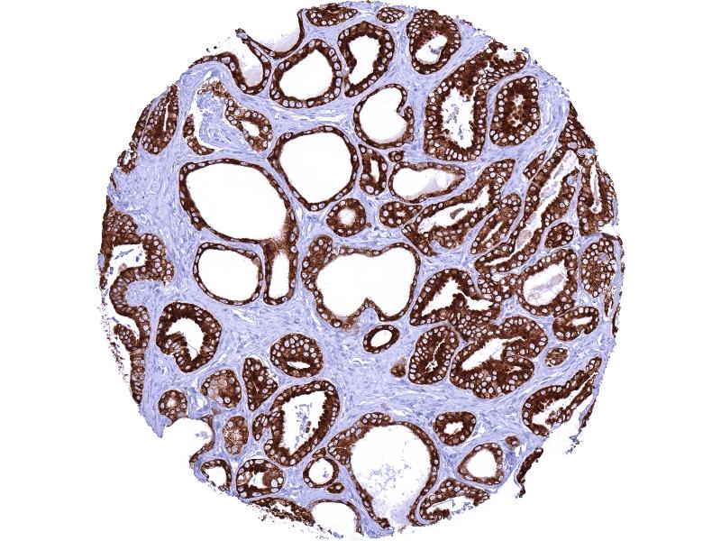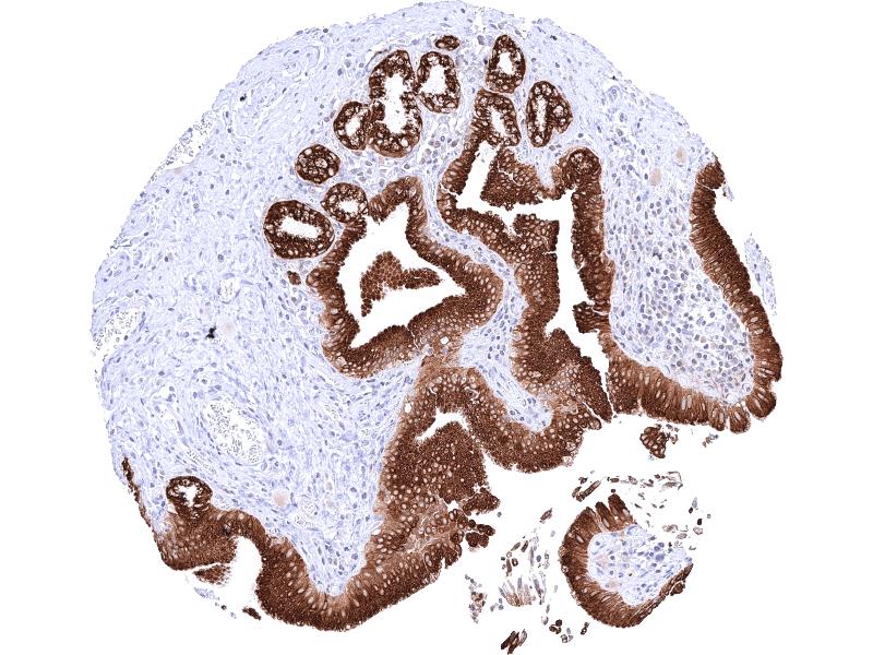 Positive Control: Colon: A strong predominantly cytoplasmic AGR2 staining should be seen in all epithelial cells.