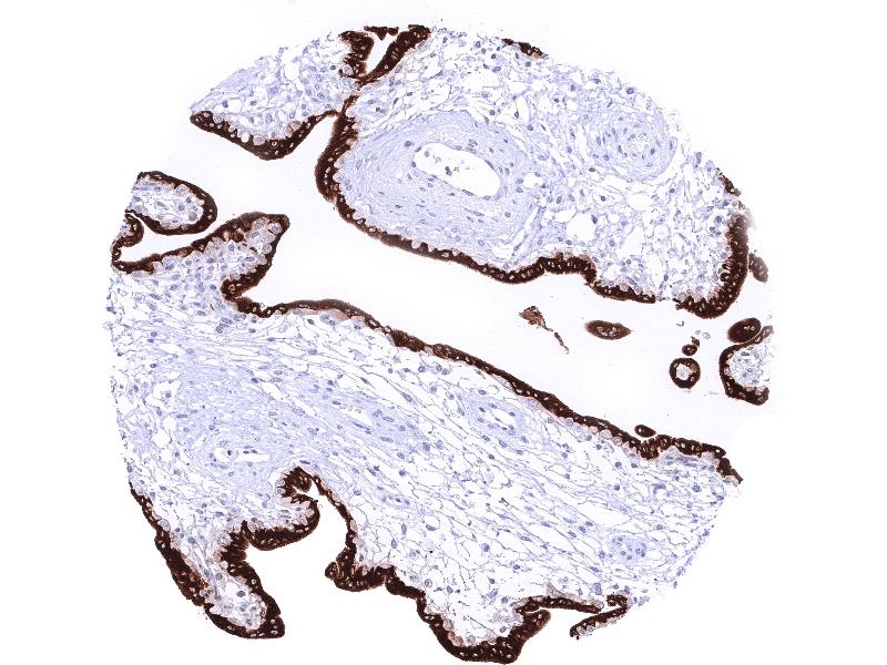 Positive Control: Placenta (mature): A strong KISS1 staining should be seen in the cytotrophoblast while stroma cells remain negative.