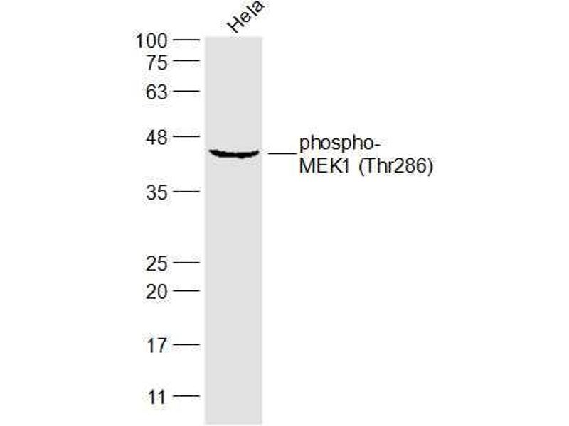 - KLH conjugated synthetic phosphopeptide derived from human MEK1 around the phosphorylation site of Thr286