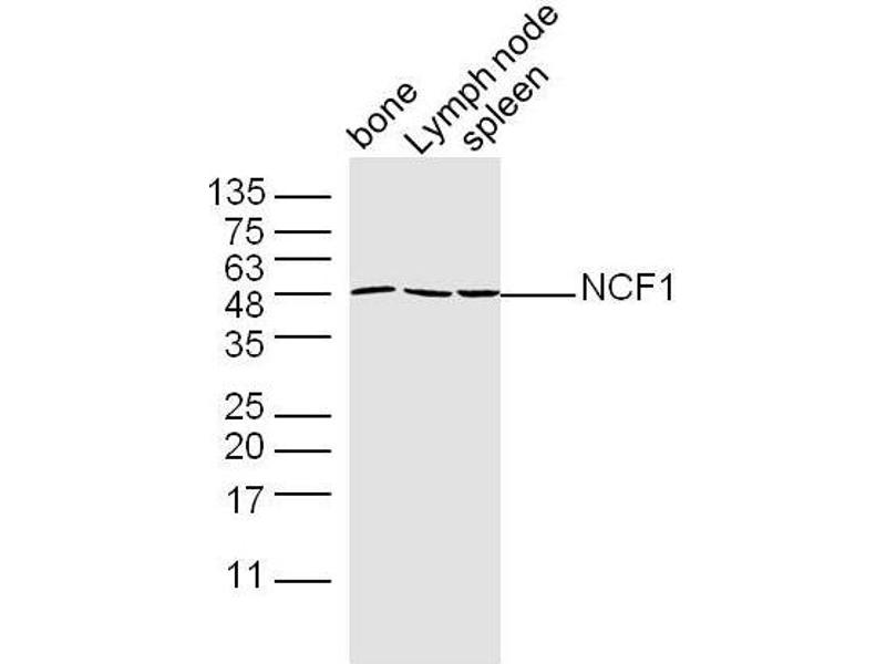 Synonyms: NCF1A, NOXO2, p47phox, SH3PXD1A, Neutrophil cytosol factor 1, NCF-1, 47 kDa autosomal chronic granulomatous disease protein, 47 kDa neutrophil oxidase factor, NCF-47K, Neutrophil NADPH oxidase factor 1, Nox organizer 2, Nox-organizing protein 2, SH3 and PX domain-containing protein 1A, p47-phox, NCF1