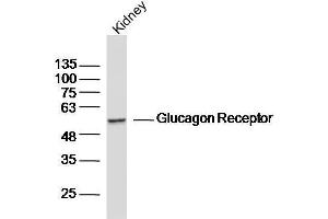 Background: G-protein coupled receptor for glucagon that plays a central role in the regulation of blood glucose levels and glucose homeostasis. Regulates the rate of hepatic glucose production by promoting glycogen hydrolysis and gluconeogenesis. Plays an important role in mediating the responses to fasting. Ligand binding causes a conformation change that triggers signaling via guanine nucleotide-binding proteins (G proteins) and modulates the activity of down-stream effectors, such as adenylate cyclase. Promotes activation of adenylate cyclase. Besides, plays a role in signaling via a phosphatidylinositol-calcium second messenger system.