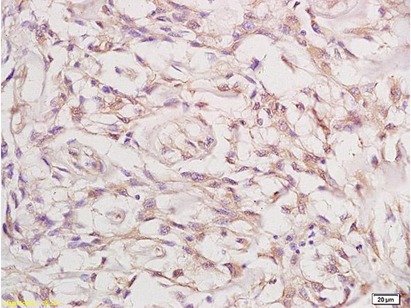 Background: Fibroblast growth factors (FGFs) produce mitogenic and angiogenic effects in target cells by signaling through the cellular surface tyrosine kinase receptors. There are four members of the FGF receptor family: FGFR-1 (flg), FGFR-2 (bek, KGFR), FGFR-3 and FGFR-4. Each receptor contains an extracellular ligand binding domain, a transmembrane region and a cytoplasmic kinase domain (1). Following ligand binding and dimerization, the receptors are phosphorylated at specific tyrosine residues (2). Seven tyrosine residues in the cytoplasmic tail of FGFR-1 can be phosphorylated: Tyr463, Tyr583, Tyr585, Tyr653, Tyr654, Tyr730 and Tyr766. Tyrosine 653 and 654 are important for catalytic activity of the activated FGFR and are essential for signaling (3). The other phosphorylated tyrosine residues may provide docking sites for downstream signaling components such as Crk and PLCgamma.
