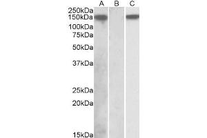Western Blot: In transfected HEK293 transiently expressing full-length Human NLRP2 (myc and DYKDDDDK tagged), a band of approx. 150 kDa was observed. No bands were observed in mock-transfected HEK293 and the same band was observed using anti-DYKDDDDK tag