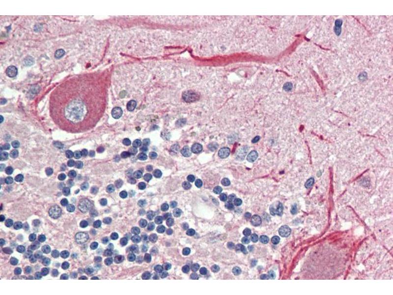 Immunohistochemistry: Paraffin embedded Human Brain (Cerebellum). Recommended concentration: 5 μg/mL.