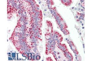 Immunohistochemistry: Paraffin embedded Human Small Intestine. Recommended concentration: 5 μg/mL.