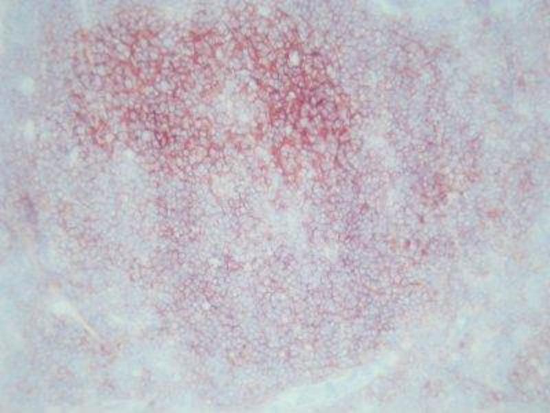 CD20 belongs to the MS4A family (Membrane-spanning 4-domains subfamily A). Its expression is restricted to normal and neoplastic B cells. It is expressed by pre-B cells in the bone marrow, and expression persists during B cell maturation but is lost upon terminal differentiation into plasma cells. CD20 is not glycosylated. CD20 is not phosphorylated in resting B cells, but becomes heavily phosphorylated after mitogen stimulation. Three cell surface isoforms 33, 35 and 37kD, result from differential phosphorylation of a single core 33kD protein within the cytoplasmic domain. Multiple proteins are coimmunoprecipitated with CD20, suggesting that it may be a component of a multimeric surface receptor complex. Monoclonal antibodies against CD20 are used therapeutically, such as Rituximab (Mabthera) or Britumomab (Zevalin).Synonyms: B-cell marker, B-lymphocyte antigen CD20, B-lymphocyte surface antigen B1, Bp35, Leu-16, MS4A1, Membrane-spanning 4-domains subfamily A member 1