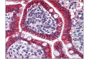The cadherins are a family of Ca++-dependent adhesion molecules that function to mediate cell-cell binding critical to the maintenance of tissue structure and morphogenesis. Cadherins each contain a large extracellular domain at the amino terminus, which is characterized by a series of five homologous repeats, the most distal of which is thought to be responsible for binding specificity. The relatively short carboxy terminal, intracellular domain interacts with a variety of cytoplasmic proteins, including catenin beta, to regulate cadherin function. LI-cadherin (for liver-intestine-cadherin) expression is restricted to liver and intestine tissues and is specifically localized to the basolateral domain of hepatocytes and enterocytes.Synonyms: CDH17, HPT-1, HPT1, Intestinal peptide-associated transporter HPT-1, Liver-intestine cadherin