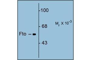 Specific for the ~58 kDa Fto protein in Western blots of rat testes lysate. The antibody has also been used for Immunocytochemistry with neuronal progenitor cells.