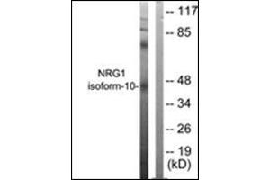 - This antibody detects endogenous levels of total NRG1 isoform-10 protein.