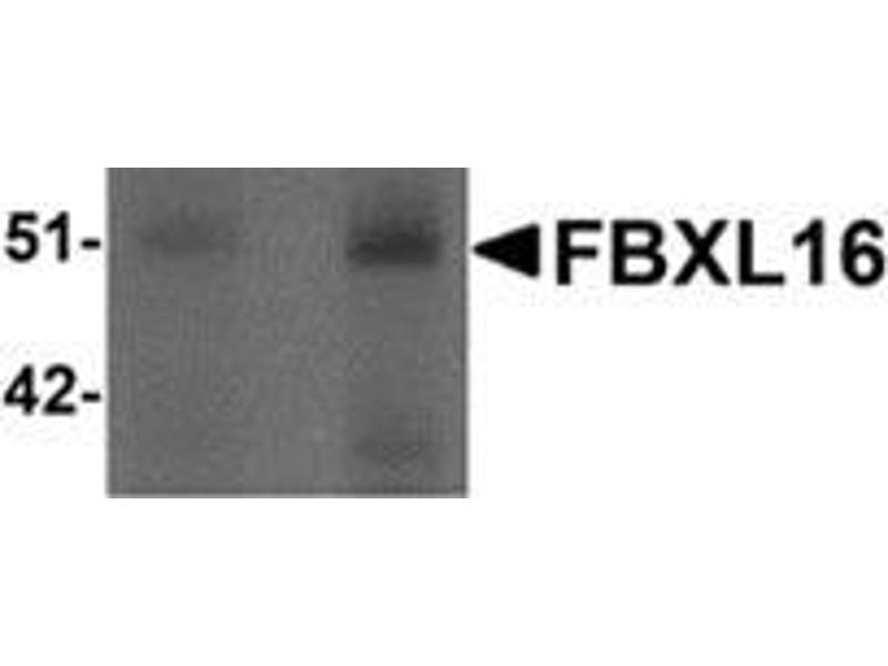 - This antibody detects FBXL16 C-term. FBXL16 antibody is predicted to not cross-react with other F-box protein family members.