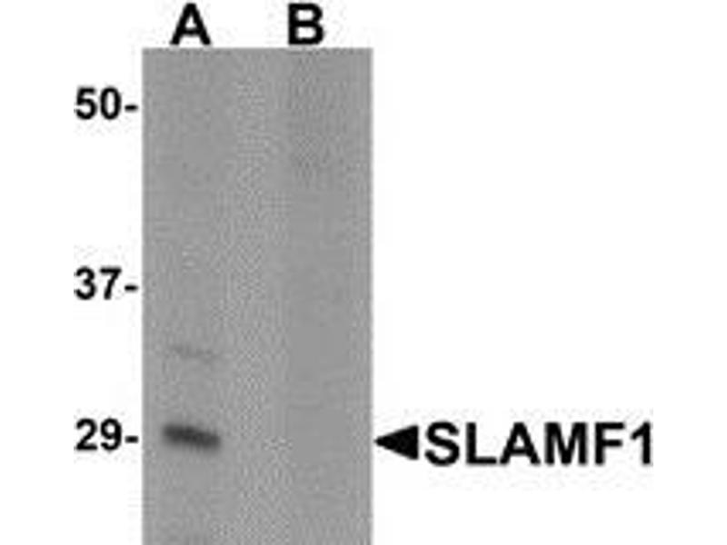 This antibody detects CD150 / SLAMF1 at N-term. Two isoforms of SLAMF1 are known to exist, this antibody will recognize both isoforms. SLAMF1 antibody is predicted to not cross-react with other SLAM protein family members.