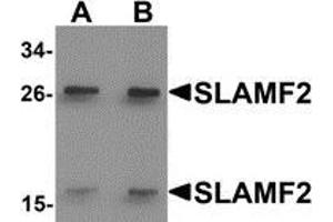 - This antibody detects CD48 / SLAMF2 at center. Two isoforms of SLAMF2 are known to exist, this antibody will recognize both isoforms. SLAMF2 antibody is predicted to not cross-react with other SLAM protein family members.