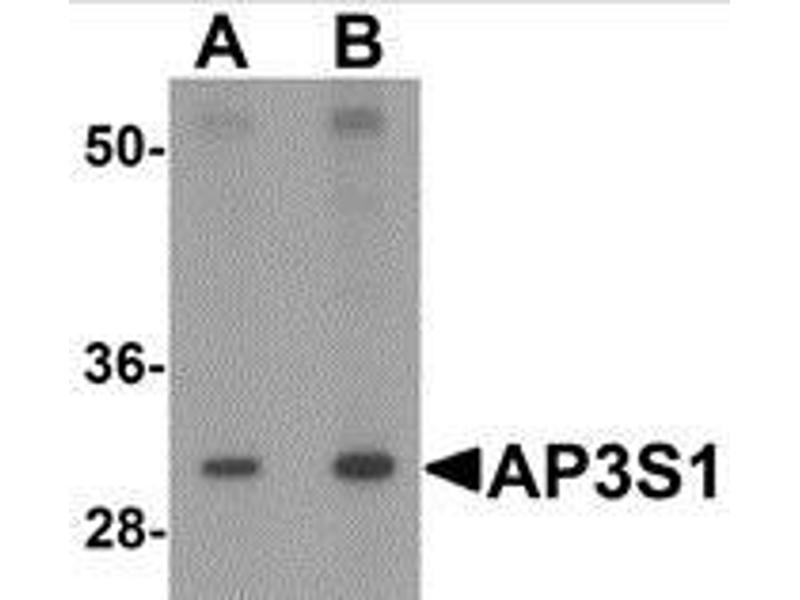 - Raised against a 19 amino acid peptide near the center of human AP3S1