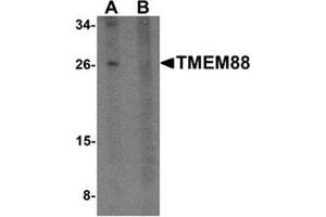 Transmembrane protein 88 (TMEM88) is a two-transmembrane-type protein whose C-terminal tail has been shown to bind the PDZ domain of Dishevelled (Dvl), one of the key components in Wnt signaling pathways. TMEM88 attentuated the Wnt/beta-catenin signaling induced by Wnt-1 ligand in a dose-dependent manner and knockdown of TMEM88 by RNAi increased Wnt activity, suggesting that TMEM88 plays a role in regulating Wnt signaling in a context-dependent manner.Synonyms: Transmembrane protein 88