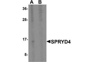 - This antibody detects SPRYD4 at Center. SPRYD4 antibody is predicted to not cross-react with other SPRYD protein family members. At least two isoforms of SPRYD4 are known to exist, this antibody will detect both isoforms.