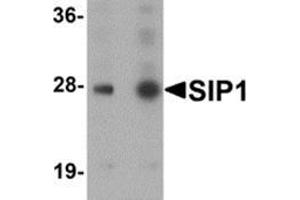SIP1 is one of the proteins found in the SMN complex, which consists of the survival of motor neuron (SMN) protein and several gemin proteins. The SMN complex is localized to a subnuclear compartment called gems (gemini of coiled bodies) and is required for assembly of spliceosomal snRNPs and for pre-mRNA splicing. SIP1 interacts directly with the SMN and it is required for formation of the SMN complex. A knockout mouse targeting the mouse homolog of this gene exhibited disrupted snRNP assembly and motor neuron degeneration. However, knockdown of the SIP1 mRNA in motor neurons showed normal motor axons while that of SMN mRNA did show abnormal motor axon outgrowth, indicating that SIP1 may have additional roles outside of the SMN complex.Synonyms: Component of gems 2, GEMIN-2, SMN-interacting protein 1, Survival of motor neuron protein-interacting protein 1