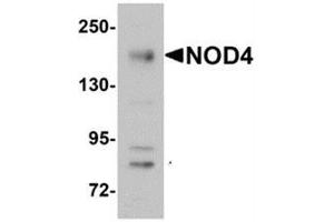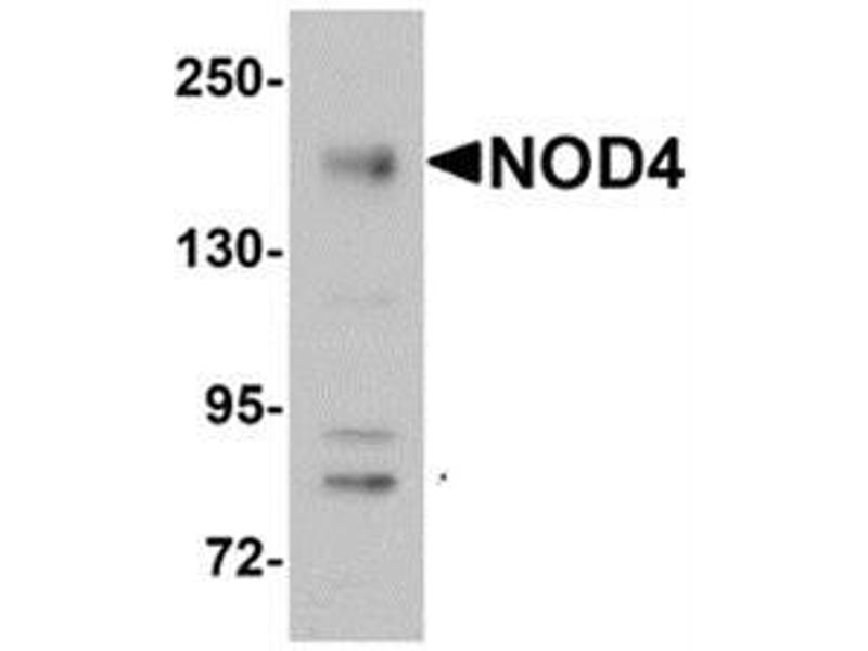 NOD4 is a member of the NOD (nucleotide-binding oligomerization domain) family, a group of proteins that are involved in innate immune defense. NOD4 contains a CARD-like domain, a central NOD domain and a large LRR region. NOD4, an IFN-gamma-inducible nuclear protein, plays a role in homeostatic control of innate immunity and in antiviral defense mechanisms. As a key negative regulator of NF-?B and type I interferon signaling, NOD4 may be a useful target for manipulating immune responses against infectious or inflammation-associated diseases, including cancer.Synonyms: CLR16.1, FLJ21709, FLJ39711, NLRC5, NOD27, NOD4