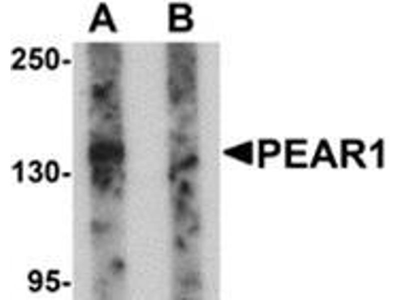 Platelet endothelial aggregation receptor 1 (PEAR1) is a platelet receptor that signals upon the formation of platelet-platelet contacts independent of platelet activation and secondary to platelet aggregation. Upon platelet aggregation stimulated by physiological agonists, PEAR1 becomes tyrosine- and serine-phosphorylated, the tyrosine phosphorylation can be inhibited by eptifibatide, an aIIbb3 antagonist that also inhibits platelet aggregation. Recent studies have indicated that genetic variations in PEAR1, may be associated with enhanced agonist-induced platelet aggregation.Synonyms: MEGF12, Multiple EGF-like domains protein 12, Multiple epidermal growth factor-like domains protein 12, Platelet endothelial aggregation receptor 1