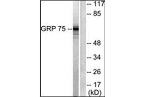 Grp75, also known as mortalin, is a member of Hsp70 family of chaperone proteins that is not heat inducible (1, 2). Grp75 is actually induced under conditions of low glucose and other nutritional and environmental stresses. Grp75 resides primarily in the mitochondrial matrix, where it collaborates with Hsp60 in the re-folding of proteins translocated into this organelle (3, 4). Related forms may also be found in the cytosol or on the surface of the extracellular membrane. Other Grp75 functions include its ability to inactivate the tumor suppressor p53 (5). Studies have found that Grp75 is over-expressed in many tumor tissues and immortalized human cell lines, suggesting its role in the tumor formation (6). Grp75 is also implicated in cell aging, as its overexpression appears to prolong the life span of human fibroblasts (7). And finally, like its E. coli homolog DnaK (8), GRP75 possesses a cation-dependent ATPase activity considered central to its function as a chaperone (9, 10).Synonyms: 75 kDa glucose-regulated protein, HSPA9B, Heat shock 70 kDa protein 9, MOT, Mortalin, PBP74, Peptide-binding protein 74, Stress-70 protein