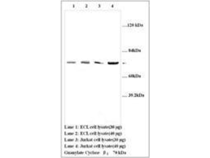 - This Polyclonal antibody is directed against Guanylate Cyclase 1. The product was purified from serum by protein A chromatography. Expect reactivity with human Guanylate Cyclase 1.