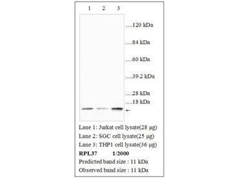 - This Polyclonal antibody is directed against human RPL37 protein. The product was purified from serum by protein A chromatography. Expect reactivity with human RPL37. Cross-reactivity with RPL37 from other sources has not been determined.