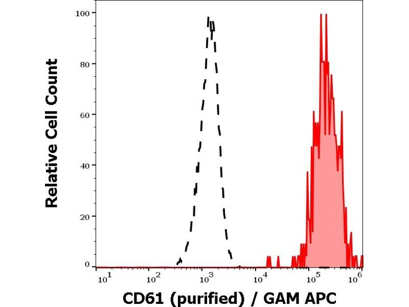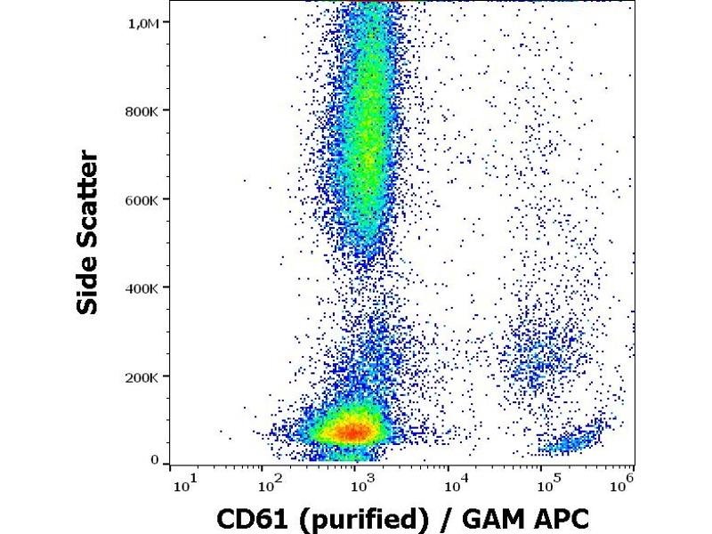 The mouse monoclonal antibody VIPL2 recognizes an extracellular epitope of CD61, a 90-110 kDa transmembrane glycoprotein of integrin family, expressed on platelets, megacaryocytes, osteoclasts, endothelial cells and other cell types, including leucocytes and smooth muscle cells.