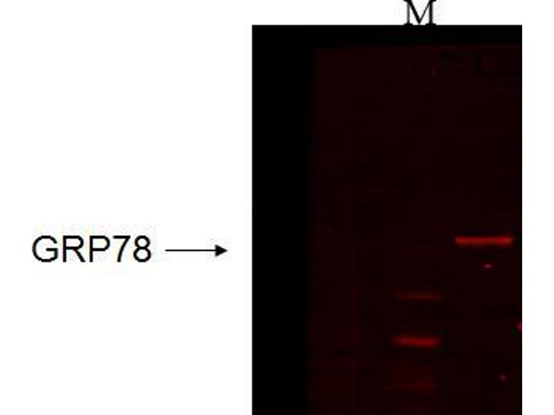 - GRP78 is a ubiquitously expressed, 78- kDa glucose- regulated protein, and is commonly referred to as an immunoglobin chain binding protein (BiP). The BiP proteins are categorized as stress response proteins because they play an important role in the proper folding and assembly of nascent protein and in the scavenging of misfolded proteins in the endoplasmic reticulum lumen. Translation of BiP is directed by an internal ribosomal entry site (IRES) in the 5' non-translated region of the BiP mRNA. BiP IRES activity increases when cells are heat stressed (1). GRP78 is also critical for maintenance of cell homeostasis and the prevention of apoptosis (2). Lou et al. have provided findings that suggest GRP78 is essential for embryonic cell growth and pluripotent cell survival (3). In terms of diseases, GRP78 has been shown to be a reliable biomarker of hypoglycemia, to serve a neuroprotective function in neurons exposed to glutamate and oxidative stress (4), and its protein levels are reduced in the brains of Alzheimer's patients (5). Also, the induction of the GRP78 protein that results in severe glucose and oxygen deprivation could possible lead to drug resistance to anti-tumor drugs (6, 7).