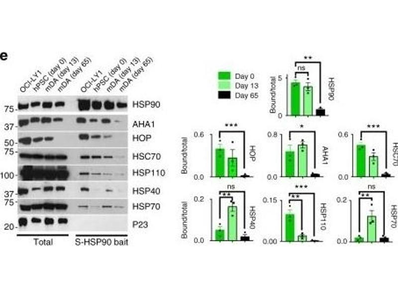 - HSP110 belongs to a family of large stress proteins known as the HSP110/SSE Family. The proteins in this family are the most distantly known relatives of the well studied HSP70 family. They share 30-33 % amino acid identity, mostly in the conserved ATP-binding domain (1). HSP110 cooperates with HSP70 in protein folding in the eukaryotic cytosol (2). In mammals, HSP110 is constitutively expressed, but exhibits particularly high levels in the brain. Both HSP70 and HSP110 are elevated after cerebral ischemia. Recent studies demonstrate that the protective effects of HSP110 deficiency in cerebral ischemia may partly be mediated by an increase in the chaperone activity of HSP70 (3). Studies also suggest that HSP110 can be used in heat shock protein-based cancer immunotherapy (4).