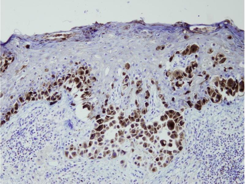 Dieser Kaninchen Monoklonal Antikörper erkennt spezifisch Melanosome in IHC (p). Er zeigt eine Reaktivität gegenüber Human.