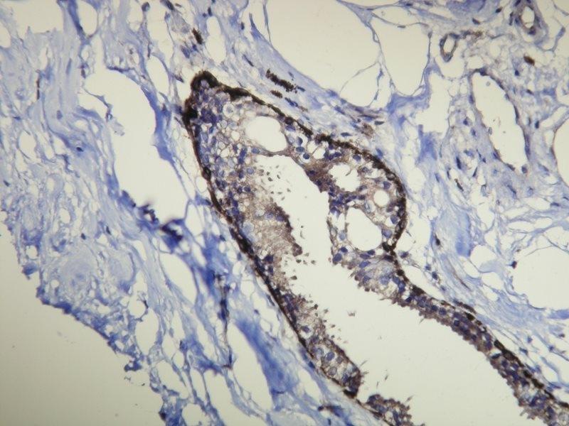 - Epithelial cytokeratin found in squamous basal cells, myoepithelium and mesothelial cells. Used in diagnostics of metaplastic breast carcinoma.