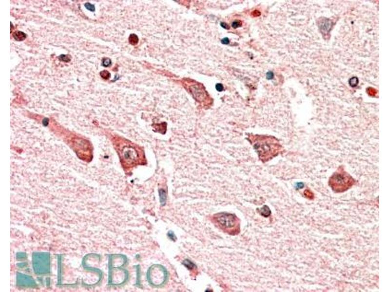 Immunohistochemistry: In paraffin embedded Human Cerebral Cortex shows cytoplasm staining in the neuronal bodies. Recommended concentration, 5-10 μg/mL.