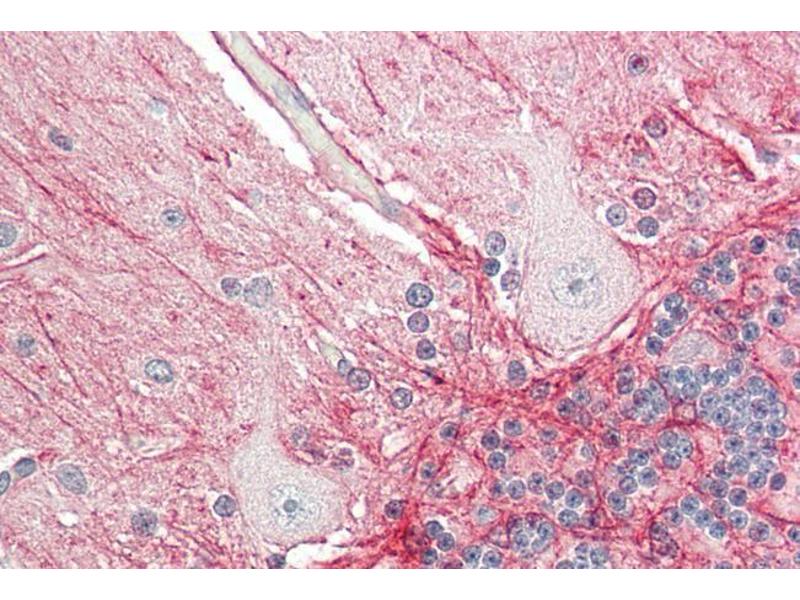 Immunohistochemistry: Paraffin embedded Human Brain (Cerebellum). Recommended concentration: 5 μg/mL.