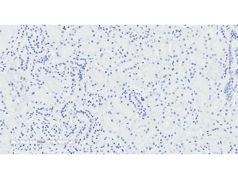 Immunohistochemistry: In paraffin embedded Human Kidney shows staining of brush borders in select PCT. Recommended concentration: 2-4 μg/mL. Paraffin embedded Human Prostate. Recommended concentration: 10 μg/mL.