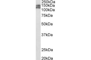 Western Blot: Approx 125 kDa band observed in Mouse fetal Kidney lysates (calculated MW of 133 kDa according to NP_001074519.2). Recommended concentration: 0.3-1 μg/mL. An additional band of unknown identity was also consistently observed at 150 kDa. This b