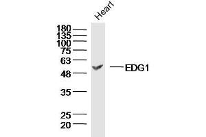 Background: G-protein coupled receptor for the bioactive lysosphingolipid sphingosine 1-phosphate (S1P) that seems to be coupled to the G(i) subclass of heteromeric G proteins. Signaling leads to the activation of RAC1, SRC, PTK2/FAK1 and MAP kinases. Plays an important role in cell migration, probably via its role in the reorganization of the actin cytoskeleton and the formation of lamellipodia in response to stimuli that increase the activity of the sphingosine kinase SPHK1. Required for normal chemotaxis toward sphingosine 1-phosphate. Required for normal embryonic heart development and normal cardiac morphogenesis. Plays an important role in the regulation of sprouting angiogenesis and vascular maturation. Inhibits sprouting angiogenesis to prevent excessive sprouting during blood vessel development. Required for normal egress of mature T-cells from the thymus into the blood stream and into peripheral lymphoid organs. Plays a role in the migration of osteoclast precursor cells, the regulation of bone mineralization and bone homeostasis (By similarity). Plays a role in responses to oxidized 1-palmitoyl-2-arachidonoyl-sn-glycero-3-phosphocholine by pulmonary endothelial cells and in the protection against ventilator-induced lung injury.