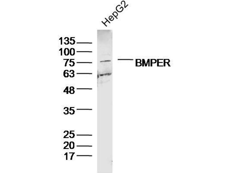 Background: This gene encodes a secreted protein that interacts with, and inhibits bone morphogenetic protein (BMP) function. It has been shown to inhibit BMP2- and BMP4-dependent osteoblast differentiation and BMP-dependent differentiation of the chondrogenic cells. Mutations in this gene are associated with a lethal skeletal disorder, diaphanospondylodysostosis. [provided by RefSeq, Dec 2011].BMPER is a BMP-binding protein that is expressed by endothelial cell precursors, has BMP-antagonizing activity, and may play a role in endothelial cell differentiation by modulating local BMP activity. It may also regulate BMP responsiveness in osteoblasts and chondrocytes.
