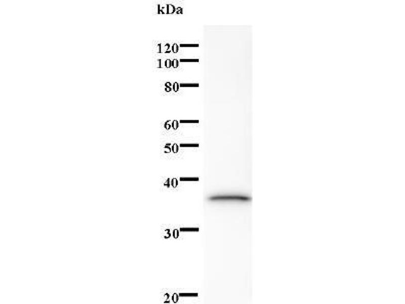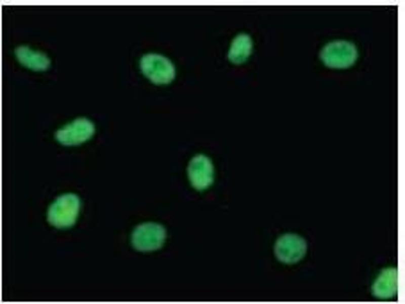 The dimeric enzyme acts as a E1 ligase for SUMO1, SUMO2, SUMO3, and probably SUMO4. It mediates ATP-dependent activation of SUMO proteins and formation of a thioester with a conserved cysteine residue on SAE2. Synonyms: Monoclonal SAE1 antibody, Anti-SAE1 antibody, SUMO-activating enzyme subunit 1 antibody, AOS1 antibody, SUA1 antibody, FLJ3091 antibody, HSPC140 antibody.