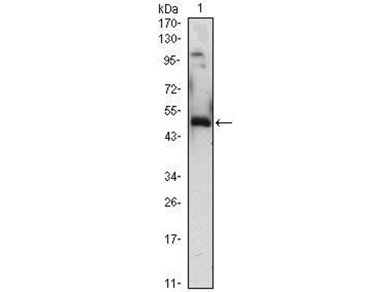 - ELISA: 1:10,000, WB: 1:500-1:2000