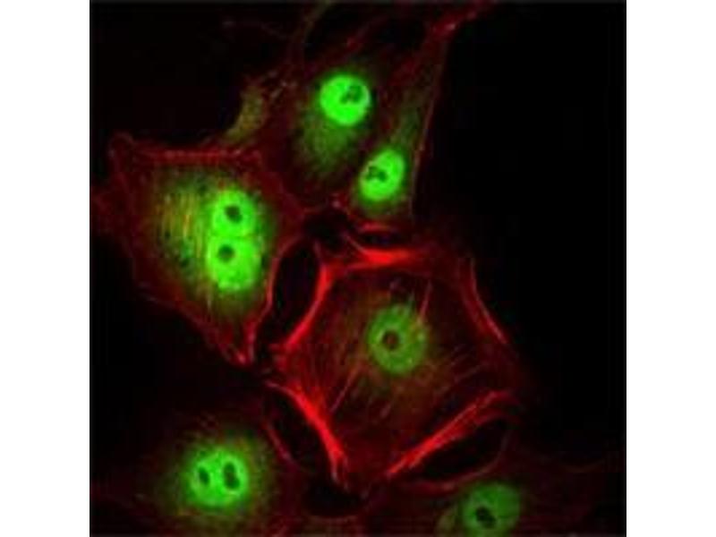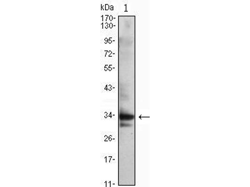 Cdc2 plays a key role in the control of the eukaryotic cell cycle, where it is required for entry into S-phase and mitosis. Cdc2 exists as a complex with both cyclin A and cyclin B. The best characterized of these associations is the Cdc2 p34 cyclin B complex, which is required for the G2 to M phase transition. Activation of Cdc2 is controlled at several steps including cyclin binding and phosphorylation of threonine 161. However, the critical regulatory step in activating Cdc2 during progression into mitosis appears to be dephosphorylation of Tyr15 and Tyr14. Phosphorylation at Tyr15 and inhibition of Cdc2 is carried out by WEE1 and MIK protein kinases while Tyr15 dephosphorylation and activation of Cdc2 is carried out by the Cdc25 phosphatase. The isoform Cdc2deltaT is found in breast cancer tissues. Furthermore, Cdc2/Cdk1 is a key mediator of neuronal cell death in brain development and degeneration. Synonyms: Monoclonal Cdc2 antibody, Anti-Cdc2 antibody, Cyclin dependent kinase 1 antibody, Cdk1 antibody, Cell division control protein 2 homolog antibody.