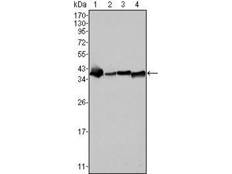 Nucleophosmin antibody was raised in Mouse using a purified recombinant fragment of human NPM expressed in E. coli as the immunogen.