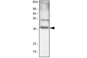 C/EBP-beta antibody was raised in mouse using recombinant human C/EBP-beta (1-271 aa) purified from E. coli as the immunogen.