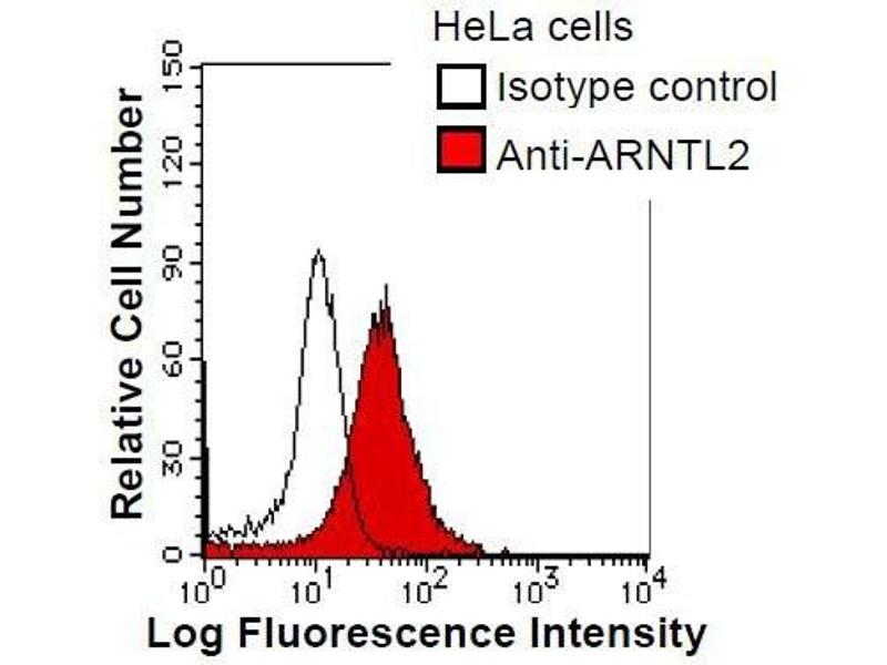 ARNTL2 antibody in PBS (3.0 mM KCl, 1.5 mM KH2 PO4 , 140 mM NaCl, 8.0 mM Na2 HPO4 (pH 7.4)) containing 1 % bovine serum albumin (BSA) and 0.05 % sodium azide (NaN3 ).