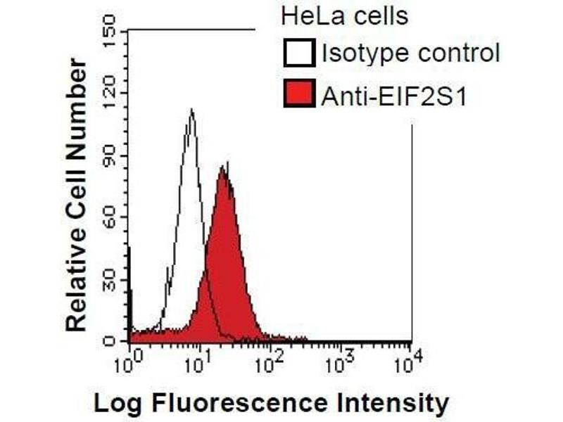 The translation initiation factor eIF2 catalyzes the first regulated step of protein synthesis initiation, promoting the binding of the initiator tRNA to 40S ribosomal subunits. Binding occurs as a ternary complex of methionyl-tRNA, eIF2, and GTP. eIF2 is composed of 3 nonidentical subunits, alpha (36 kDa), beta (38 kDa, MIM 603908), and gamma (52 kDa, MIM 300161). The rate of formation of the ternary complex is modulated by the phosphorylation state of eIF2-alpha. Synonyms: Monoclonal EIF2S1 antibody, Anti-EIF2S1 antibody, Eukaryotic translation initiation factor 2 subunit 1 antibody, EIF-2A antibody, EIF-2alpha antibody, EIF-2 antibody, EIF2A antibody.