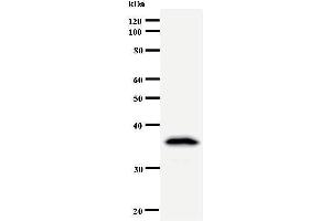 DDX39 antibody in PBS (3.0 mM KCl, 1.5 mM KH2 PO4 , 140 mM NaCl, 8.0 mM Na2 HPO4 (pH 7.4)) containing 1 % bovine serum albumin (BSA) and 0.05 % sodium azide (NaN3 ).