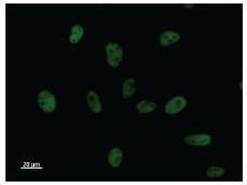 This gene is a proto-oncogene candidate. It is identified by its translocation into the immunoglobulin alpha-locus in some cases of B-cell leukemia. The protein encoded by this gene contains seven ankyrin repeats, which are most closely related to those found in I kappa B proteins. This protein functions as a transcriptional co-activator that activates through its association with NF-kappa B homodimers. The expression of this gene can be induced by NF-kappa B, which forms a part of the autoregulatory loop that controls the nuclear residence of p50 NF-kappa B. Synonyms: Monoclonal BCL3 antibody, Anti-BCL3 antibody, B-cell lymphoma 3 encoded protein antibody, BCL4 antibody, D19S37 antibody.