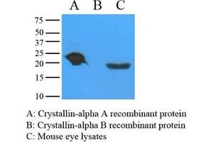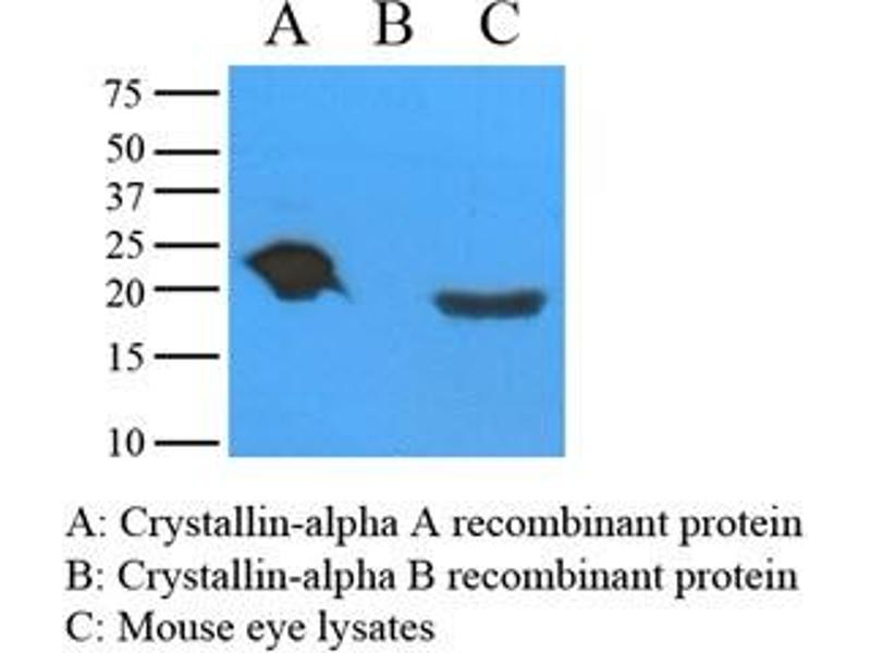alpha Crystallin A antibody was raised in mouse using recombinant human Crystallin alpha A (1-173aa) purified from E. coli as the immunogen.