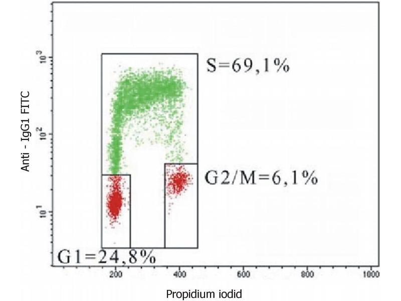 The antibody MoBu-1 reacts specifically with BrdU incorporated into DNA during S-phase of a cell cycle. It reacts also specifically with 5-bromouridine (BrU), and it does not cross-react with EdU.